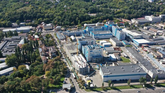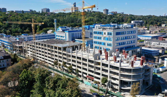 Реконструкція майнового комплексу передбачає будівництво нового офісно-лабораторного корпусу з вбудованим паркінгом загальною площею майже 30000 кв.м.
